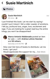 Emotional Roller Coaster: I just finished this book. Let me start by saying I couldn't put it down! I felt a roller coaster of emotions. I felt joy, profound loss, anger, love, excitement, and rage. If you are looking for a great read, buy the entrie trilogy. You won't be disappointed!